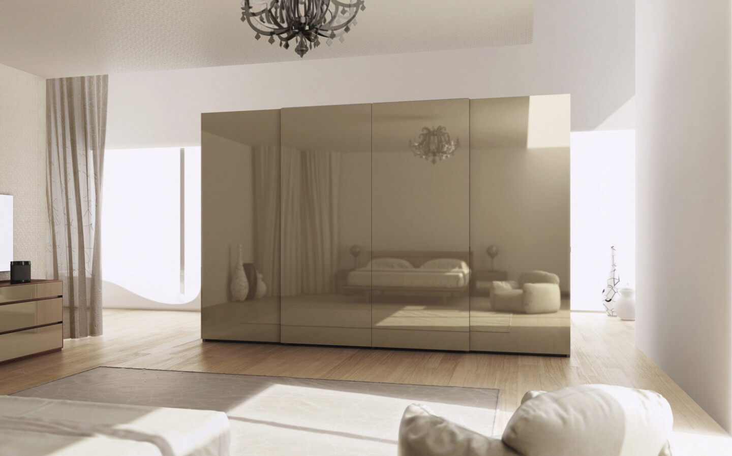 L’armadio su misura moderno Crystal si caratterizza per l’anta in vetro. L’armadio è costruito interamente in tamburato su legno ed è personalizzabile nelle dimensioni. I vetri dell’armadio moderno Crystal possono essere opachi o lucidi e verniciati nelle colorazioni a campionario oppure ulteriormente personalizzati con una colorazione RAL. Internamente l’armadio può essere attrezzato con svariati accessori dall’illuminazione LED ai cassetti, dai servetti ai ripiani ecc.